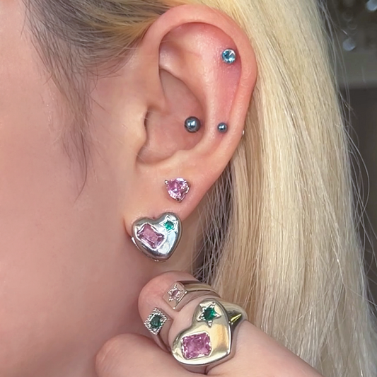 Love Struck Huggies & Rings Set - 4pcs
